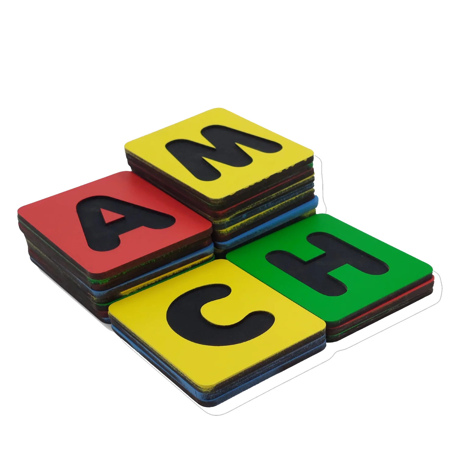 - Tactile engraved letters help develop fine motor skills and letter recognition