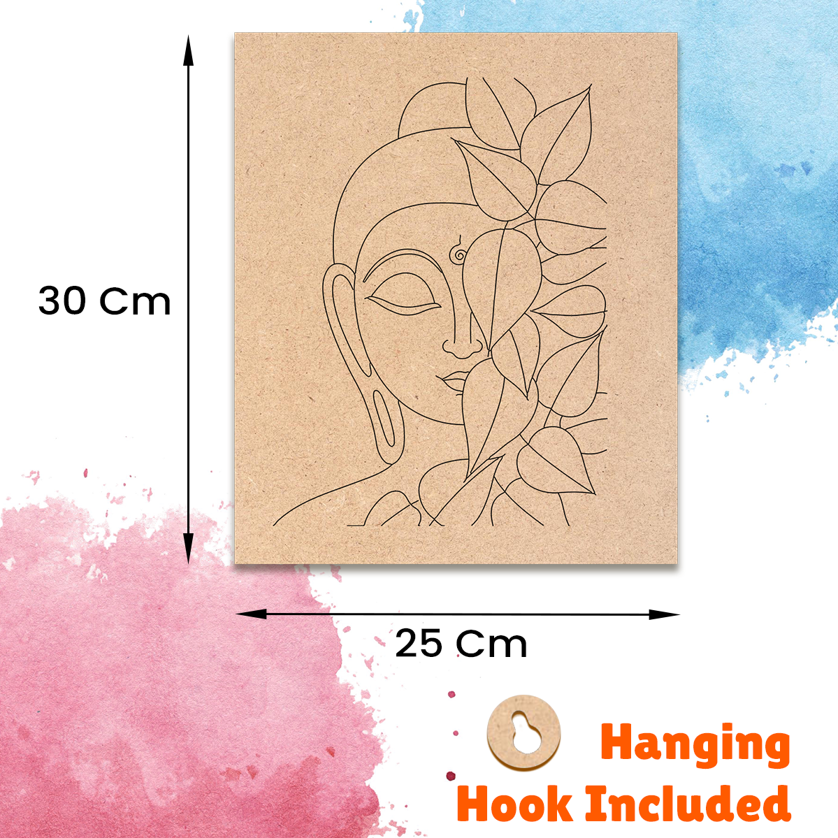 Unleash creativity with our Pre-marked MDF Painting Board featuring a serene Buddha design with decorative leaves. This ready-to-paint board comes with pre-drawn outlines, making it perfect for children to add their own colors and style.