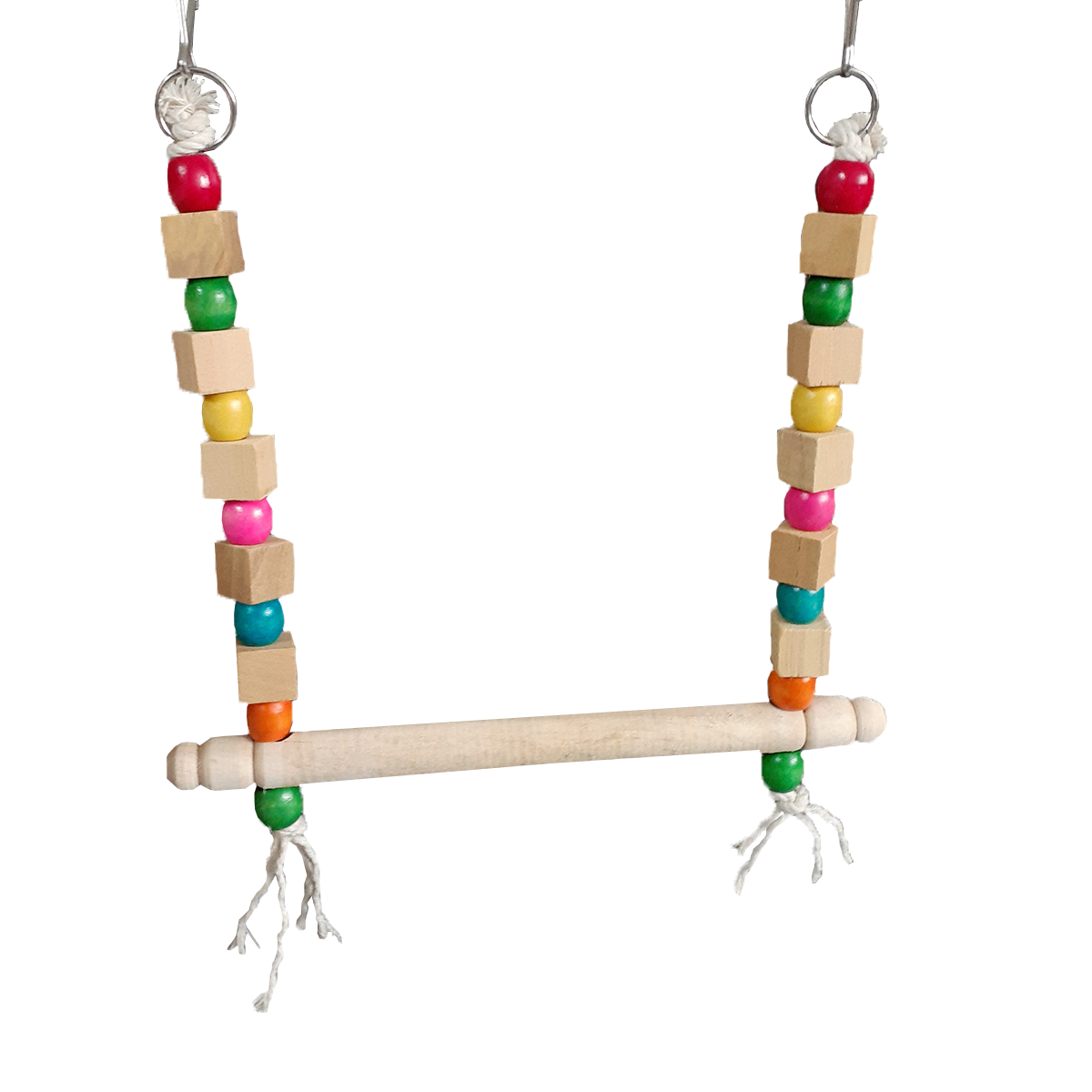 This charming medium-sized bird swing features vibrant wooden beads on both sides and a natural wood perch. Perfect for medium birds, it provides a comfortable place to rest, play, and swing while adding a pop of color to their environment.