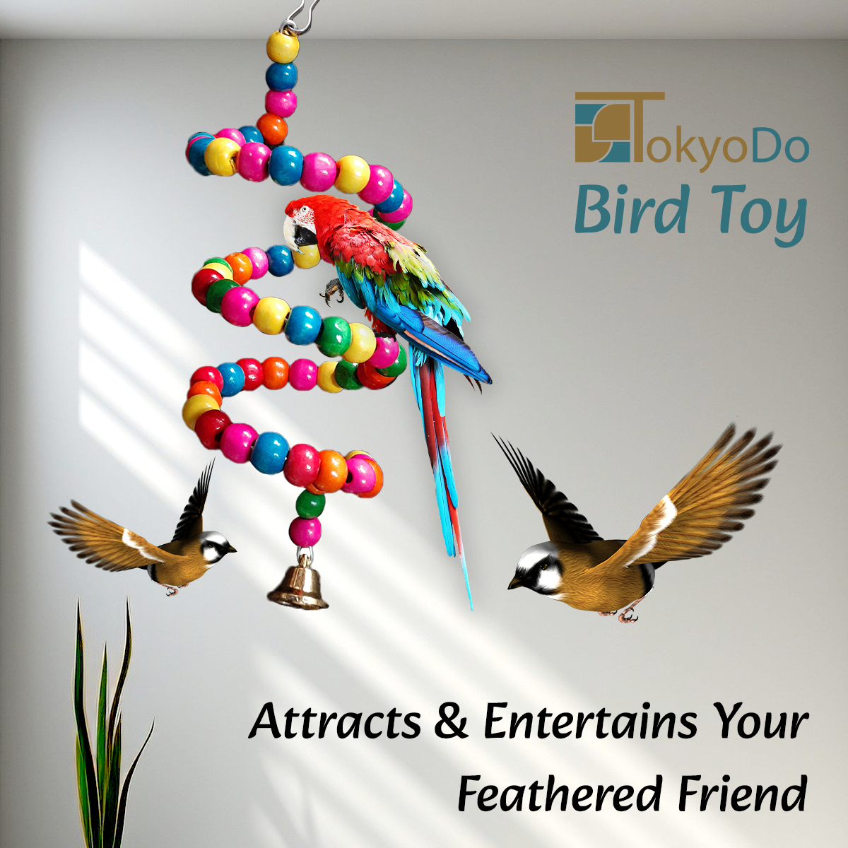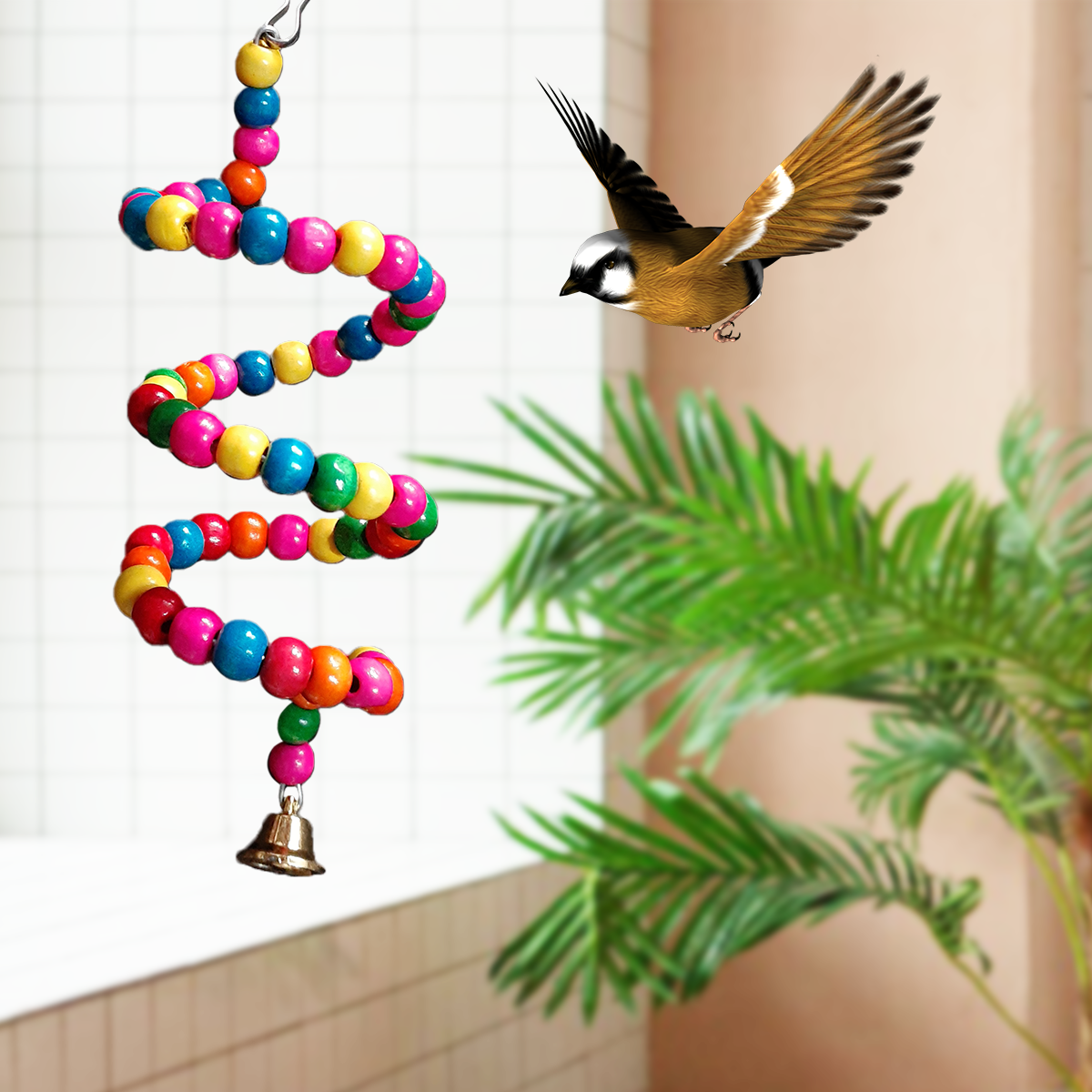 Decorate your home and attract beautiful birds with this unique spiral toy. Your feathered friend will love exploring the different perching angles, playing with the colorful beads, and ringing the bell for hours of entertainment.