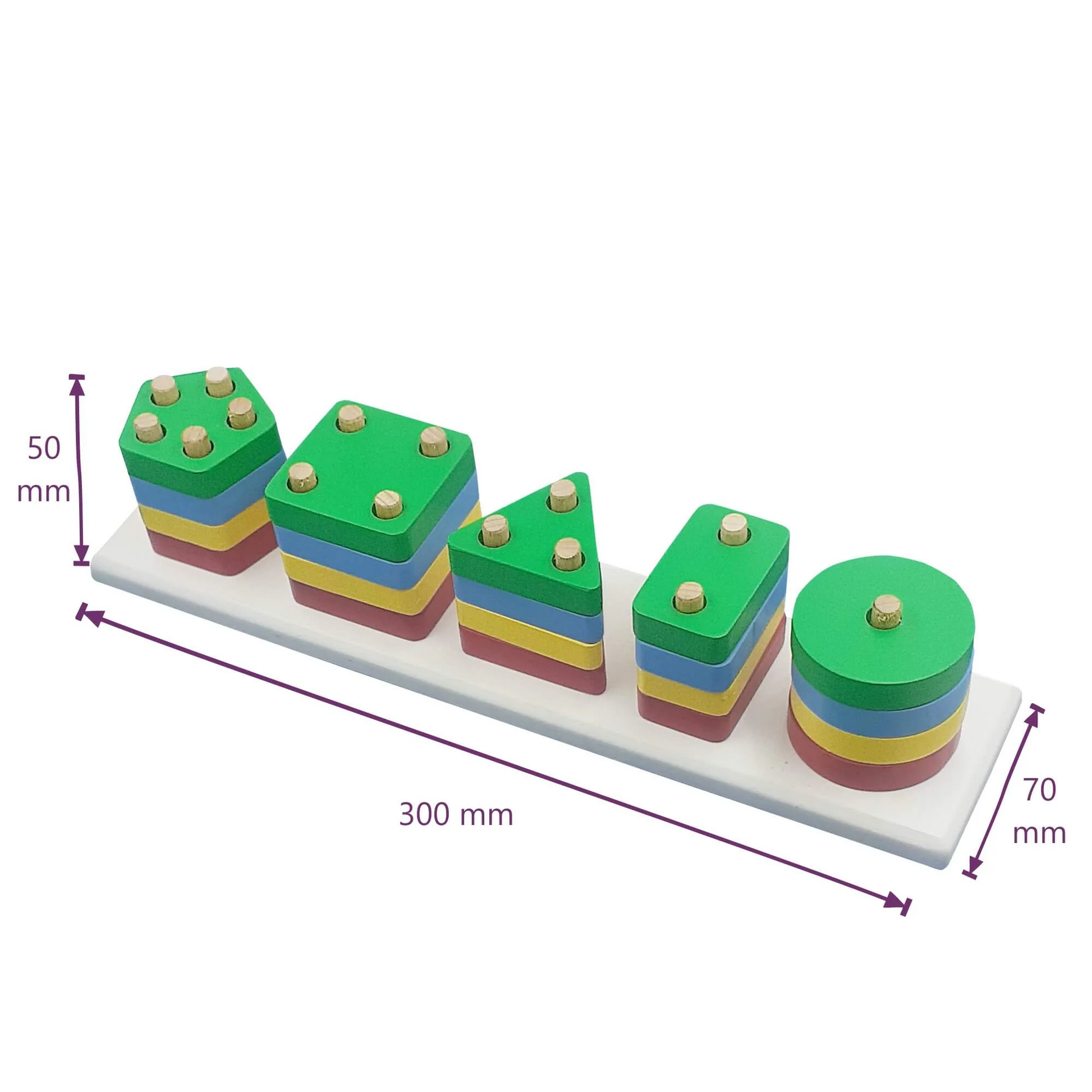 Wooden Geometric Shape Stacking Puzzle - 5 Shapes Sorting Toy