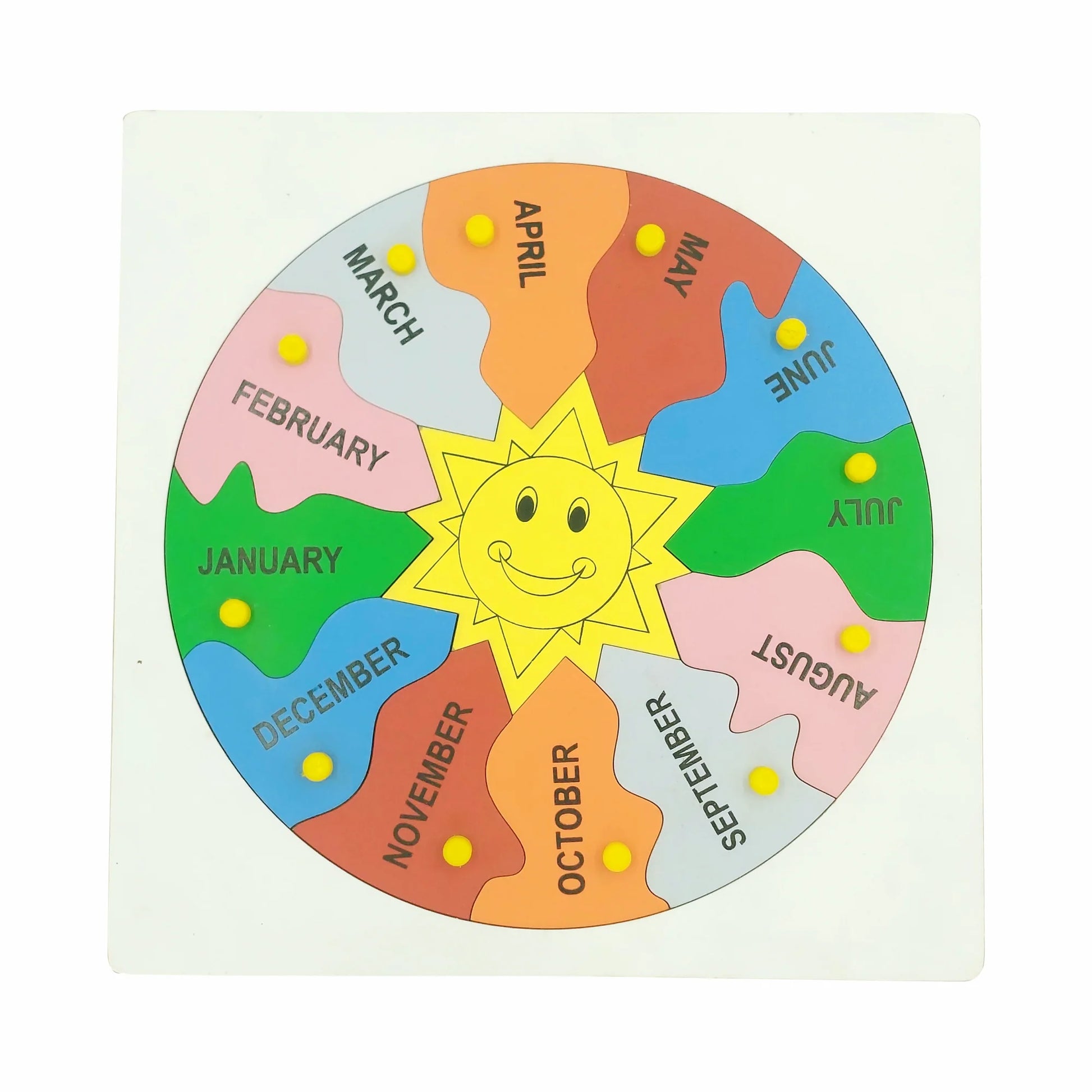 This Montessori-inspired educational puzzle helps children develop time awareness, fine motor skills, and cognitive abilities while learning the sequence of months throughout the year. The cheerful sun design and colorful month pieces make calendar learning enjoyable and memorable.